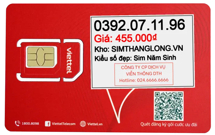 Sim 0392071196 - Sim Năm Sinh 0392071196