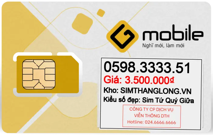 Sim 0598333351 - Sim Tứ Quý Giữa 0598333351