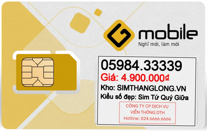 Sim 0598433339 - Sim Tứ Quý Giữa 0598433339