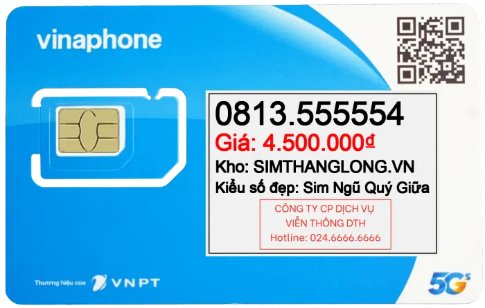 Sim 0813555554 - Sim Ngũ Quý Giữa 0813555554