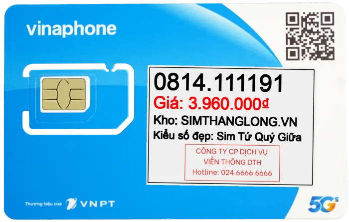 Sim 0814111191 - Sim Tứ Quý Giữa 0814111191